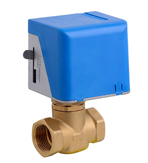 VA7010系列開(kāi)關(guān)式電動(dòng)二通閥由VAA7010系列閥門(mén)驅(qū)動(dòng)器和VAV7010系列銅閥組成。用于控制冷水或熱水空調(diào)系統(tǒng)管道的開(kāi)啟或關(guān)閉,達(dá)到控制室溫之目的。驅(qū)動(dòng)器由單向磁滯同步電機(jī)驅(qū)動(dòng),閥門(mén)彈簧復(fù)位。閥門(mén)不工作時(shí)處于常閉狀態(tài),當(dāng)需要工作時(shí),由溫控器提供一個(gè)開(kāi)啟信號(hào),使電動(dòng)閥接通交流電源而動(dòng)作,開(kāi)啟閥門(mén),冷凍水或熱水進(jìn)入風(fēng)機(jī)盤(pán)管,為房間提供冷氣或暖氣;當(dāng)室溫達(dá)到溫控器設(shè)定值時(shí),溫控器令電動(dòng)閥斷電,復(fù)位彈簧使閥門(mén)關(guān)閉,從而截?cái)噙M(jìn)入風(fēng)機(jī)盤(pán)管的水流。通過(guò)閥門(mén)關(guān)