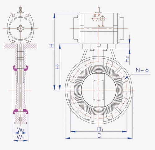 2.氣動塑料蝶閥作用方式:雙作用活塞式、單作用彈簧復位式。