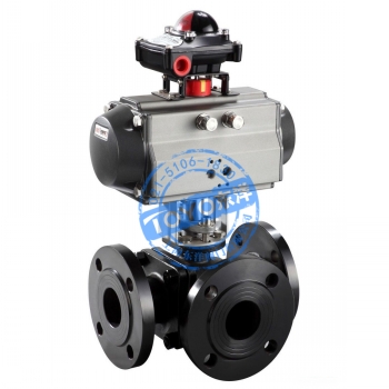 L(T)形氣動球閥是由氣動執(zhí)行機(jī)構(gòu)和三通閥組成,是一種旋轉(zhuǎn)類切斷調(diào)節(jié)閥門,具有關(guān)閉嚴(yán)密,結(jié)構(gòu)緊湊,重量輕,維修方便等優(yōu)點(diǎn)。廣泛用于氣體、液體、蒸汽、油品等腐蝕性介質(zhì)的管道自動化控制。
